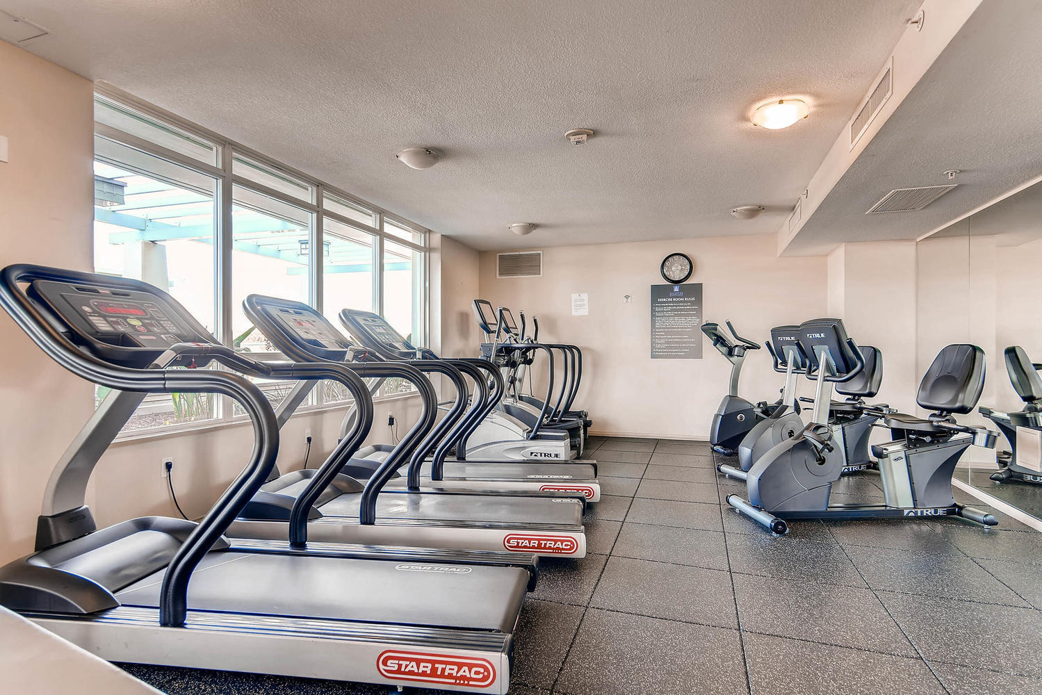 The condo also includes a stackable washer and dryer located in the half bath. Enjoy the views outside from your large balcony. The building is secure and has 24 hour security. Community amenities include access to the pool, jacuzzi, cabanas, bbq, community room, business center, sauna, steam room, and gym.